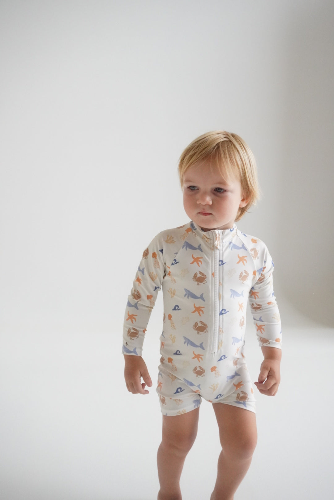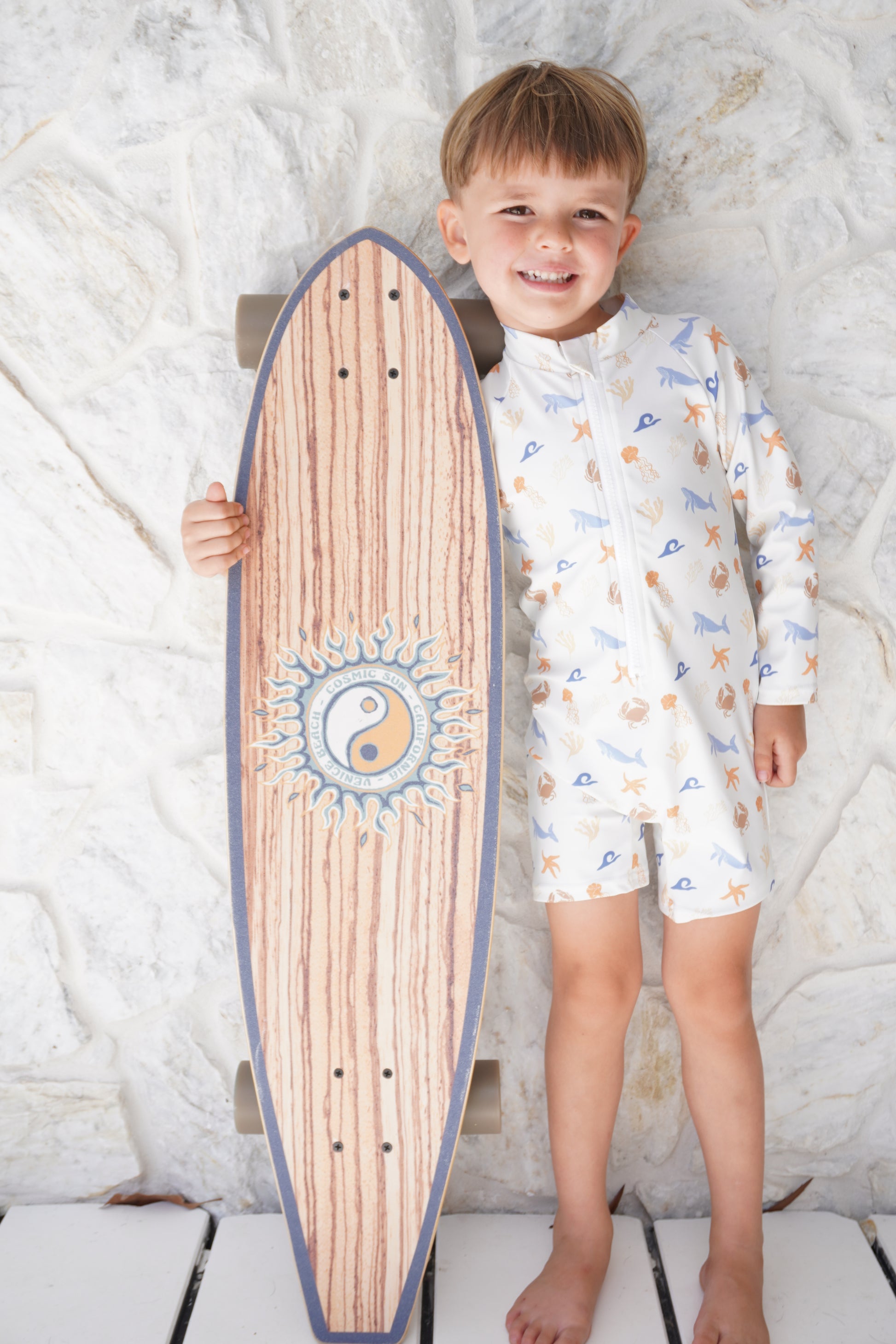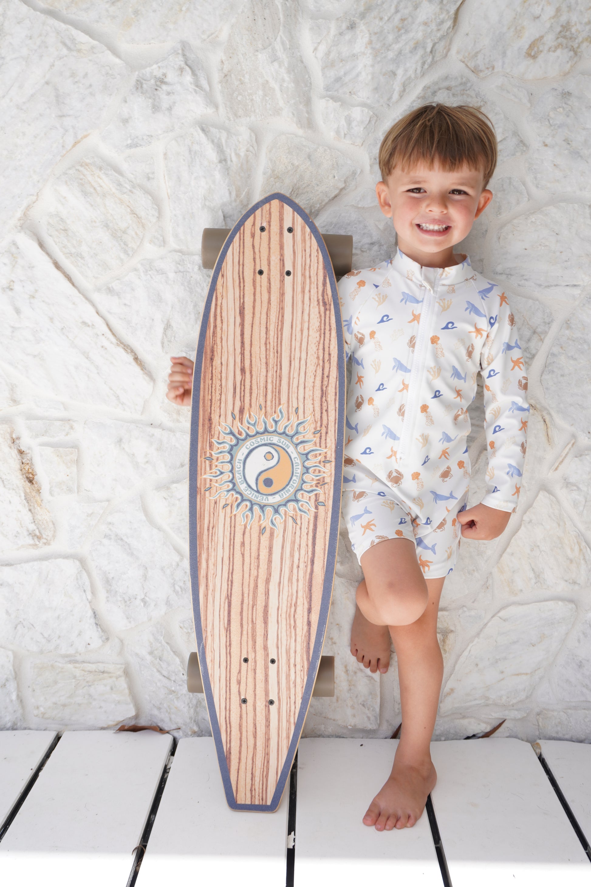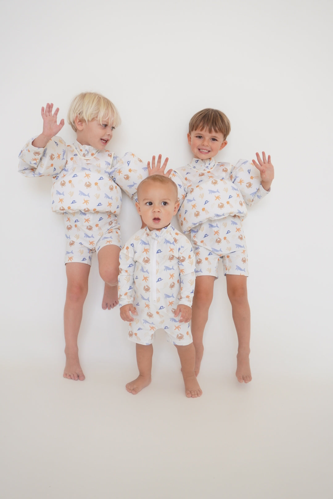 Designed in Australia, this collection embodies the essence of beachside adventures with stunning, timeless designs that blend elegance and practicality. Crafted for kids who love to explore, our swimwear offers comfort, durability, and sun protection in every stitch.